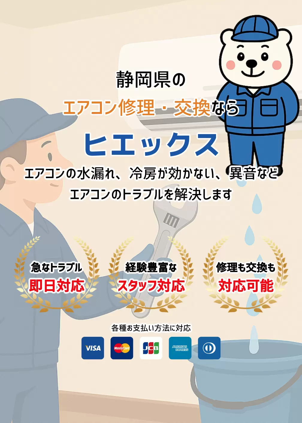 経験豊富なエアコン専門スタッフが対応します。これまで複数の現場で修理や水漏れに携わってきたノウハウを活かし、安心な対応を行います。